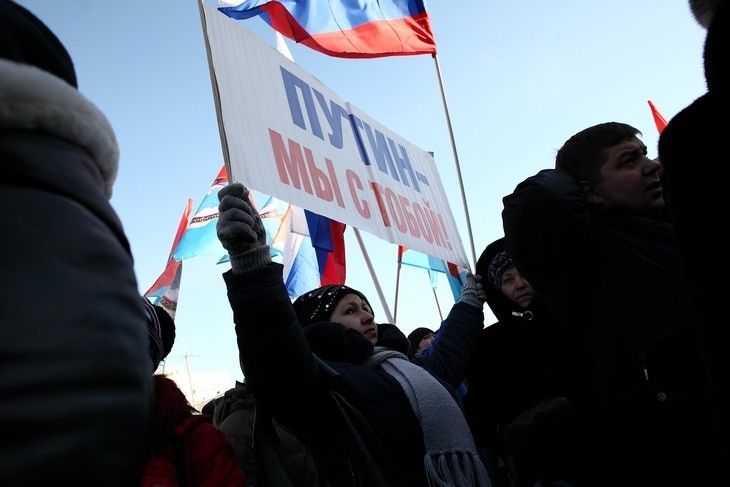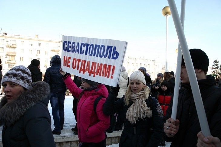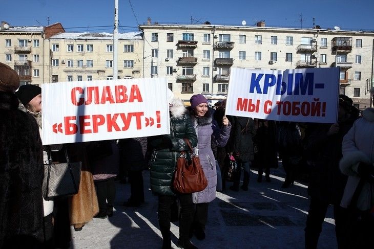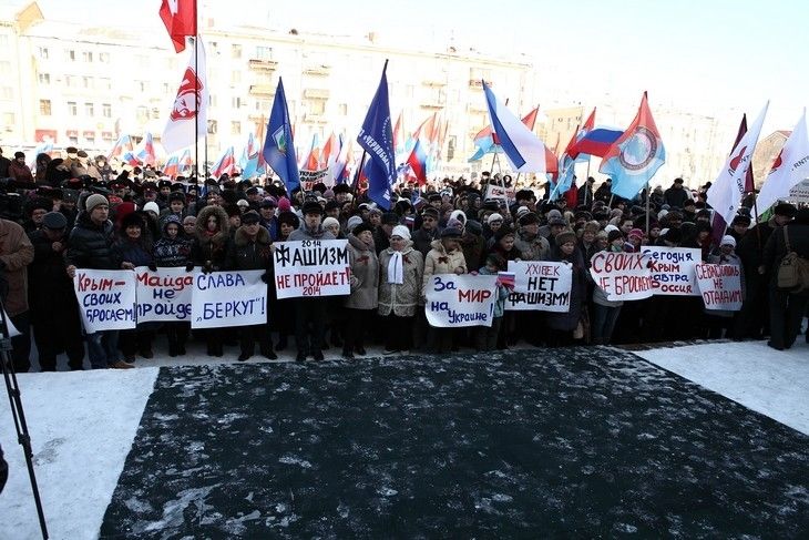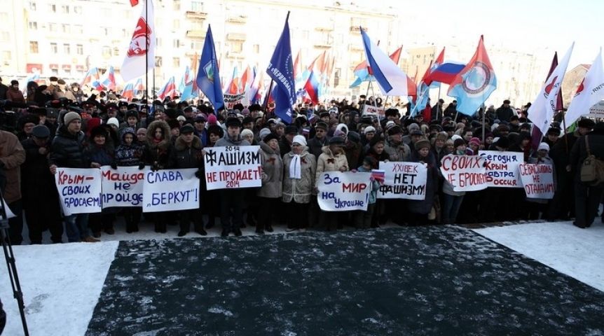 Последние события на Украине собравшиеся оценили не иначе как фашизм и приняли резолюцию о согласии на ввод российских войск на Украину в том случае, если в стране будет происходить насилие в отношении русскоязычного населения, – сообщил корреспондент «СуперОмска». Другое мнение оказалось только у одной девушки – она стояла в стороне от митингующих, держа плакат с призывом «Нет войне!».