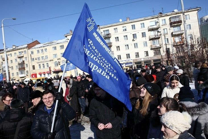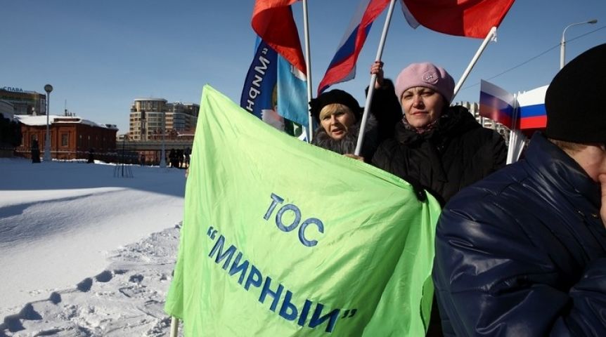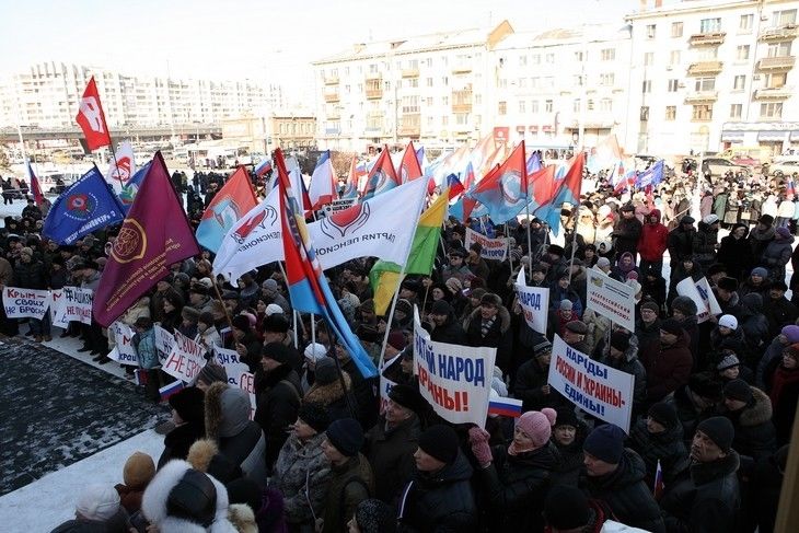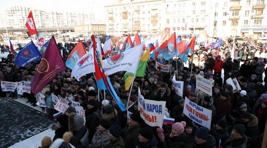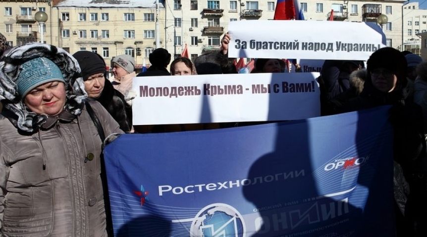 В 16:00 5 марта несколько тысяч омичей вышли на согласованный митинг в поддержку Крыма и русскоязычного населения Украины, организованный Федерацией омских профсоюзов совместно с региональным отделением «Народный фронт — за Россию», Общественной палатой Омской области и рядом общественных организаций.