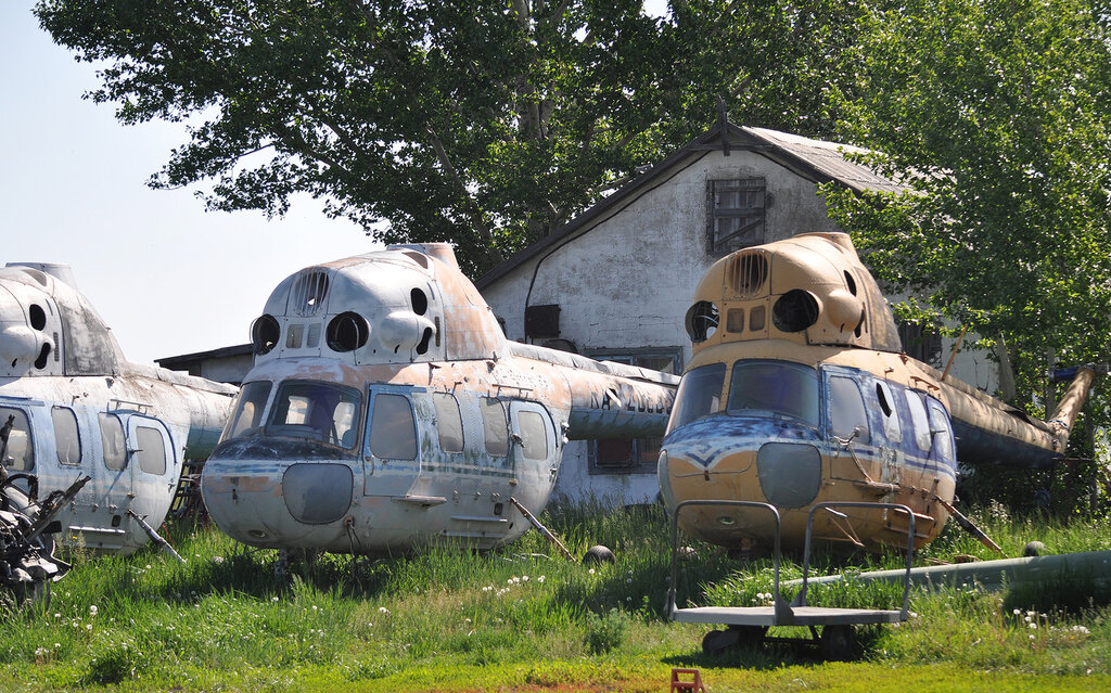 Итак, стоят эти винтокрылые и не очень машины на территории аэропорта в рабочем поселке Марьяновка, который, судя по открытым данным, принадлежит ООО «Омский аэроклуб». Территория там охраняется, есть и видеонаблюдение, так что урвать сувенир или подзаработать на металлоломе не получится, а вот на фотосессию, если хорошо попросить, пожалуй, пустят.