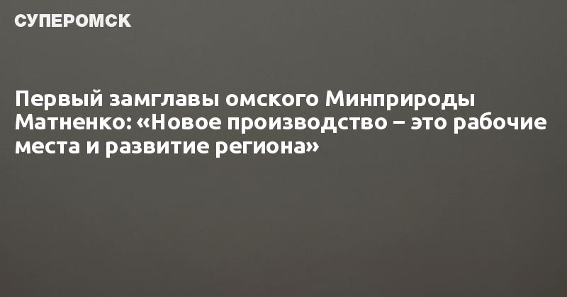 Первый замглавы омского Минприроды Матненко: «Новое производство – это рабочие места и развитие региона»