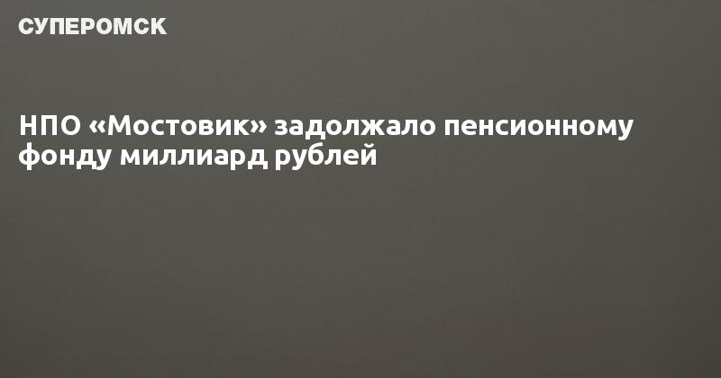 НПО «Мостовик» задолжало в Пенсионный фонд РФ за 2013 год около 1 млрд рублей. Об этом на совещании в мэрии заявил управляющий отделением ПФ по Омской области Сергей Тодоров. Чиновник отметил, что задолженность «Мостовика» - «уникальная по своему объему и находится на контроле федеральных структур». На данный момент руководство строительного предприятия согласовало с пенсионным фондом схему выплат и уже погасило задолженность за 1 квартал 2013 года - 330 млн рублей.