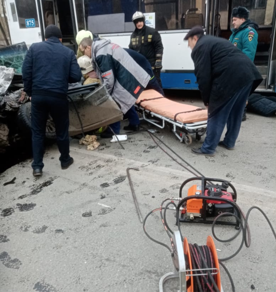 После извлечения из легкового автомобиля пострадавших передали медикам.