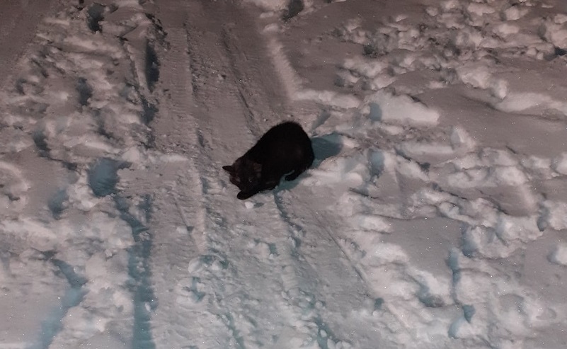 В Омске котик со сверхспособностью примерз к дороге, когда его выставили из дома из-за проблем со стулом