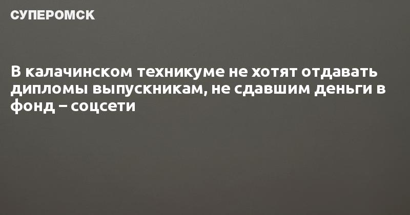О ситуации в калачинском техникуме в соцсетях анонимно рассказала мама одной из выпускниц. Со слов автора, ей позвонили из учебного заведения и попросили сдать деньги в некий фонд за все три года обучения. Женщина отказалась сдавать деньги, однако на это ей сообщили, что диплом выпускнице не отдадут, пока деньги не будут сданы.