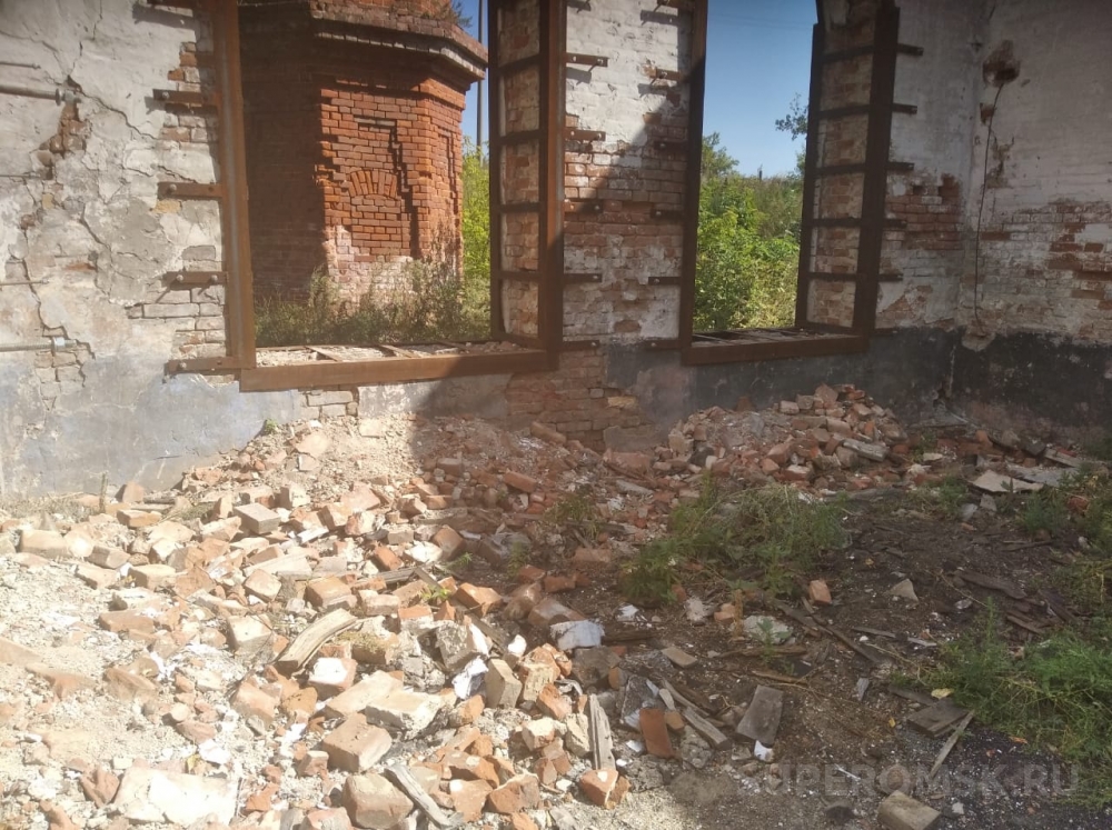 Здание водозабора, вернее его руины (простите, но другого слова и не подобрать), встречает нас без крыши, без окон и ворот, с высыпающимся кирпичом из его стен.
