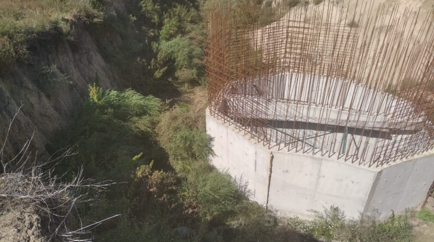 В обвалившемся котловане видна созданная «профессиональными руками» строителей водоприемная камера. Она действительно восьмиугольная, только имеет она форму неправильного восьмиугольника, со следами выдавленной опалубки. Покрытый ржавчиной арматурный каркас верхних ярусов камеры, связанный из арматурных стержней разных диаметров без соблюдения требований нормативно-технической документации, без соблюдения шага и перехлеста арматуры наглядно демонстрирует объем еще предстоящих строительно-монтажных работ.