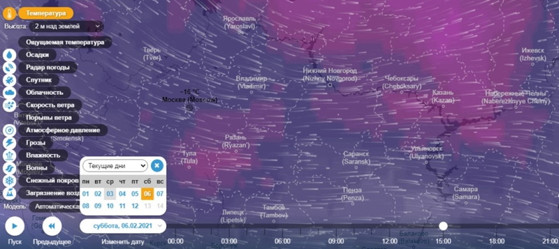По данным сервиса «Вентускай.ком», на выходных в столицу России придет похолодание, и дневная температура в Москве в субботу, 6 февраля, опустится до -16 градусов Цельсия (на фото ниже).